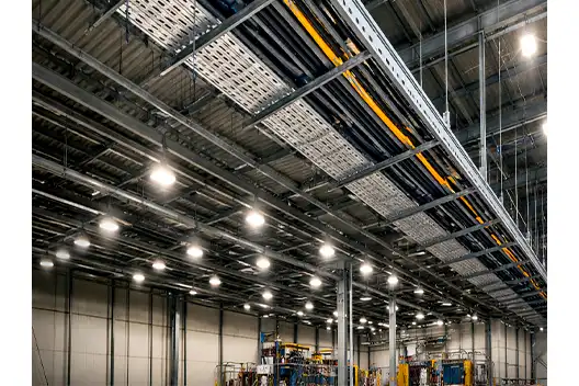 Instalação elétrica para galpões industriais em São Paulo e região. Projeto, quadro elétrico, manutenção e infraestrutura elétrica completa.